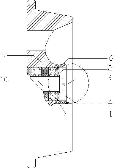 礦車輪對(duì)密封裝置、卡簧本實(shí)用新型公開了一種礦車輪對(duì)密封裝置,包括套置于輪對(duì)軸承(10)外部并固定在輪轂(9)上的密封筒(1),密封筒(1)內(nèi)壁與輪對(duì)軸承(10)外側(cè)之間設(shè)置有油封(2),輪對(duì)軸承(10)端部設(shè)置有防松緊固螺母(3),防松緊固螺母(3)的底部與油封外表面緊密配合,在密封筒(1)內(nèi)設(shè)置有防塵蓋(4),
